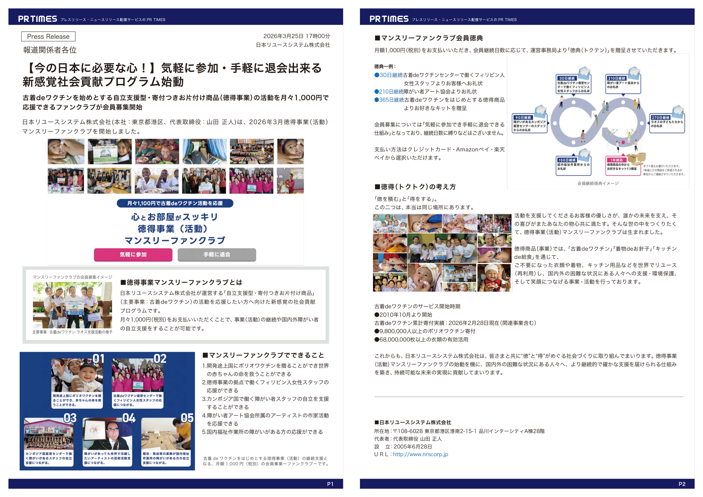【徳得事業】マンスリーファンクラブについてプレスリリースを配信いたしました。